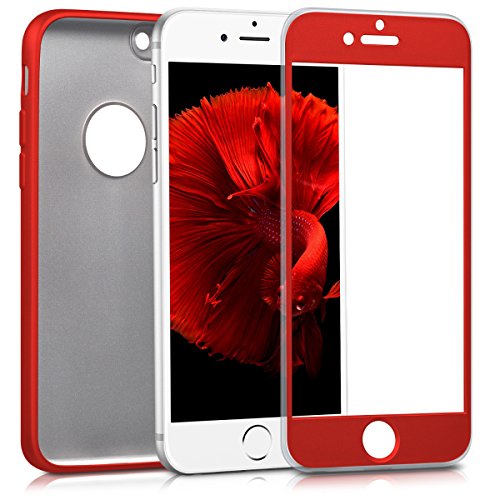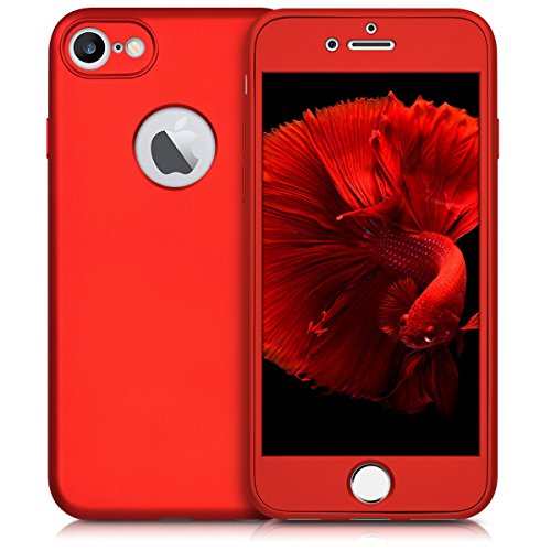 - Funda iPhone 7 360 Grados Completa - Carcasa Integral y Cristal de Vidrio Templado para Movil Apple iPhone 7 - Fundas Delantera y Trasera - iPhone 7 Case Cover Rojo
