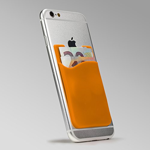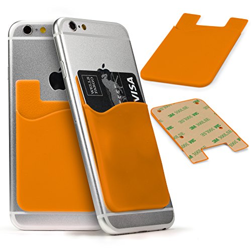 - ~Funda Card Slot , Bolsillo Adhesivo Trasero Universal Smartphone Móvil Porta Tarjetas Externa Documentos Tarjetero en Suave TPU Naranja~